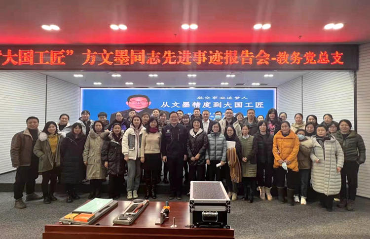 为进一步弘扬“爱岗敬业、争创一流,艰苦奋斗、勇于创新,淡泊名利、甘于奉献”的劳模精神,扎实推进党史学习教育,11月24日,教务党总支邀请被誉为大国工匠的中航工业首席技能专家方文墨来校作了题为《奋斗的我 最美的国》的主题讲座。教务党总支全体党员、其他党总支教职员工及学生代表参加本次讲座。讲座由教务党总支副书记刘大伟主持。