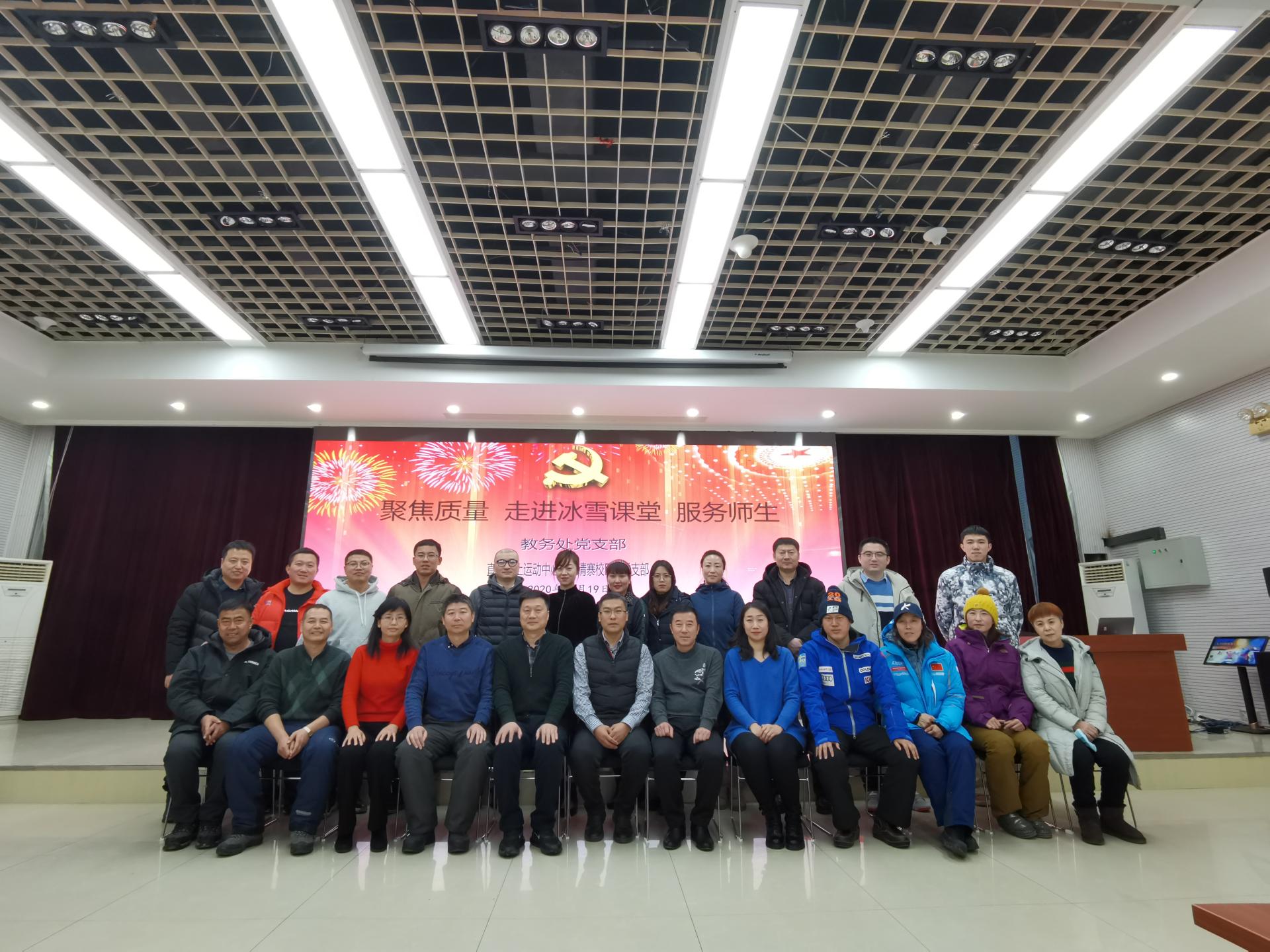 12月20日下午,教务处党支部全体党员来到白清寨滑雪场,与直属雪上运动中心(白清寨校区)党支部联合开展“服务冰雪、聚焦质量、走进雪上课堂”主题党日活动。此次主题党日活动分为两部分:一是教务处处长、教务党总支书记曹连众带领全体党员同志深入到雪课教学第一线,与教师和学生进行近距离的沟通交流,了解教师教学和学生上课情况,观看了技术科考评实施情况;二是两个支部就雪课教学服务和管理工作联合召开专题座谈会。教务处党支部全体党员、雪上运动中心直属党支部成员、冰雪教研室教师代表和学生代表参加会议。会议由雪上运动中心直属党支部书记李峰主持。