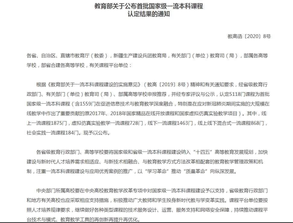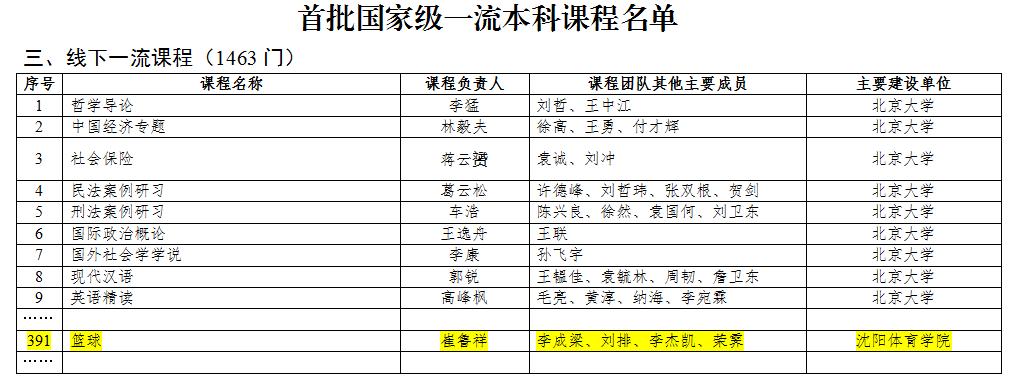 11月24日,教育部公布《教育部关于公布首批国家级一流本科课程认定结果的通知》,我校崔鲁祥教授主持申报的《篮球》课程位列其中,获评首批国家级一流本科线下课程,我校一流本科课程建设质量再上新台阶。